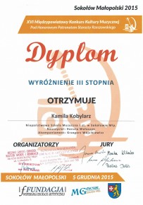 nauczyciel: Danuta Wołoszyn - Kamila Kobylarz (Niepaństwowa Szkoła Muzyczna I st. w Sokołowie Młp.), skrzypce