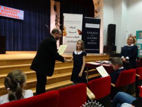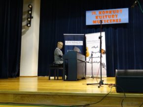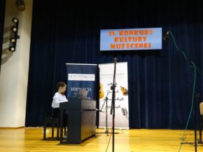 Zapraszamy do obejrzenia zdjęć z XIX Sokołowskiego Konkursu Kultury Muzycznej, który odbył się 15 grudnia 2018 roku w Dali Widowiskowej Miejsko Gminnego Ośrodka Kultury Sportu i Rekreacji w Sokołowie Małopolskim. W konkursie wzięli udział uczestnicy z 16 szkół muzycznych: Niepaństwowa Szkoła Muzyczna I st. w Leżajsku, Niepaństwowa Szkoła Muzyczna I st. w Sokołowie Małopolskim, Niepaństwowa Szkoła Muzyczna II st. w Leżajsku, Państwowa Szkoła Muzyczna I st. w Leżajsku, Państwowa Szkoła Muzyczna I st. w Łańcucie, Państwowa Szkoła Muzyczna nr 5 we Lwowie, Placówka Artystyczna Świat Muzyki Nowa Sarzyna, Publiczna Szkoła Muzyczna I st. w Pruchniku, Szkoła Muzyczna I st. w Domosławicach, Szkoła Muzyczna I st. w Dydni, Szkoła Muzyczna I st. w Dynowie, Szkoła Muzyczna I st. w Głogowie Małopolskim, Szkoła Muzyczna I st. w Kańczudze, Szkoła Muzyczna I st. w Trzcianie (Woj. Małopolskie), Zespół Państwowych Szkół Muzycznych w Przemyślu i Zespół Szkół Muzycznych nr 1 w Rzeszowie. Uczniów do występu przygotowali nauczyciele: Adrianna Sawa, Agnieszka Gałdyś, Agnieszka Kłos, Aleksander Koziński, Anna Misiak-Zub, Anna Wójcikiewicz, Barbara Szydełko, Elżbieta Hoffman, Ewa Borcz, Gabriela Wojtas, Grzegorz Wójcikiewicz, Iwona Nowosadska, Jowita Nidecka-Kordas, Krzysztof Skoczyński, Magdalena Siwa-Kujawa, Krystyna Man Li Szczepańska, Maria Skupniewicz, Marta Woś-Karczmarz, Orest Brylińska, Paulina Woś-Gucik, Sofiya Hasoshyn, Stanisław Jaworski, Stanisław Partyka, Sylwia Łyko, Urszula Buda i Wojciech Jurkiewicz. Wykonawcom akompaniowali: Agnieszka Hoszowska-Jabłońska, Edwin Szetela, Jacek Gęsicki, Krystyna Man Li Szczepańska i Wojciech Styś. Wykonawców oceniała Komisja Konkursowa w składzie: Anna Wójcikiewicz (prezes Fundacji Wspierania Edukacji artystycznej), Monika Witalec (nauczyciel szkół muzycznych w Sokołowie Małopolskim i Dynowie), Krzysztof Przybyło (nauczyciel szkół muzycznych w Sokołowie Małopolskim i Strzyżowie), Stanisław Jaworski (dyrektor PSM I st. w Leżajsku, nauczyciel szkół muzycznych w Leżajsku, Żołyni i Sokołowie Małopolskim).