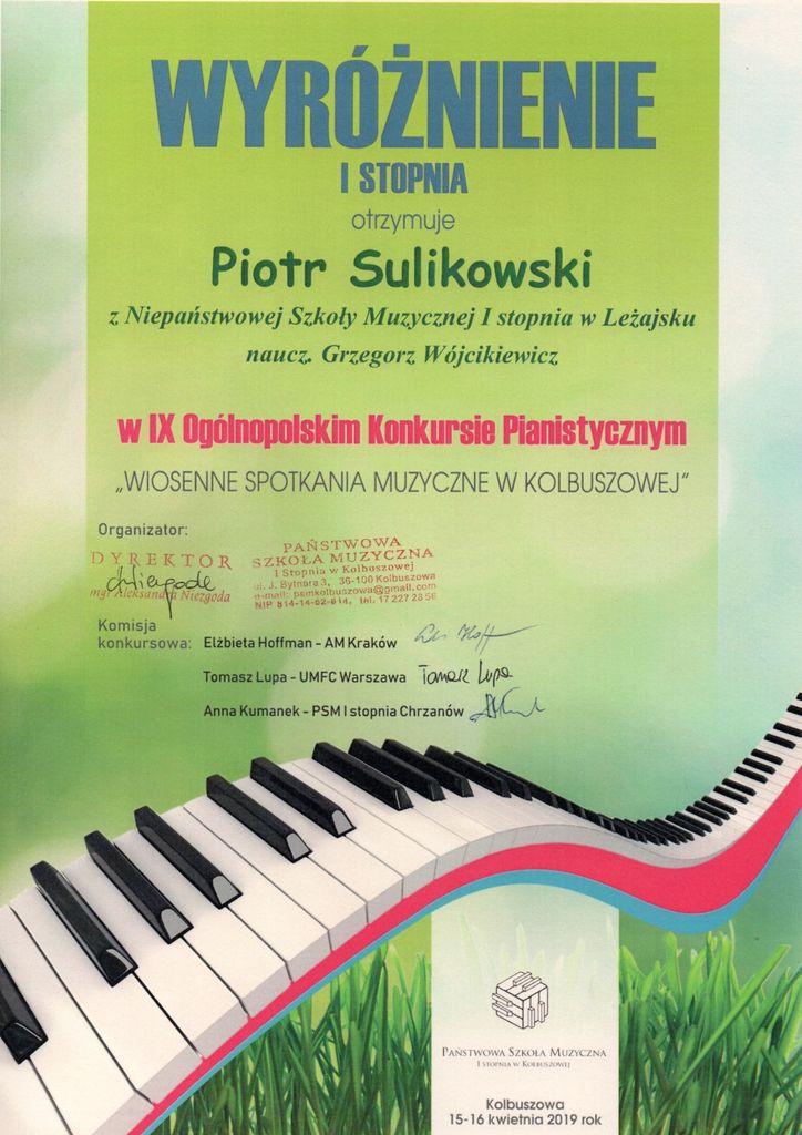 Piotr Sulikowski, naucz. Grzegorz Wójcikiewicz – Wyróżnienie I stopnia