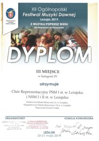 - Chór Reprezentacyjny PSM I st. i NSM I st. w Leżajsku, naucz. Iwona Ćwikła – III miejsce