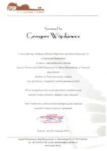 Gratulacje i Dyplomy z okazji Jubileuszu XXV-lecia Niepaństwowej Szkoły Muzycznej I st. w Sokołowie Małopolskim