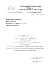 - Poprzedni post Gratulacje i Dyplomy z okazji Jubileuszu XXV-lecia Niepaństwowej Szkoły Muzycznej I st. w Sokołowie Małopolskim