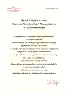 Gratulacje i Dyplomy z okazji Jubileuszu XXV-lecia Niepaństwowej Szkoły Muzycznej I st. w Sokołowie Małopolskim