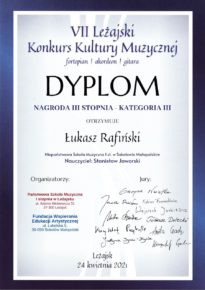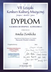 • Amelia Ziembicka – NSM I st. w Leżajsku, naucz. Wojciech Jurkiewicz – Nagroda III Stopnia