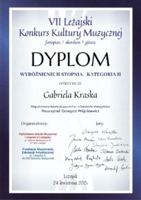 Z wielką satysfakcją odnotowujemy kolejne sukcesy naszych uczniów. W miesiącu kwietniu odbył się VII Leżajski Konkurs Kultury Muzycznej – Online 2020/2021 o zasięgu ogólnopolskim. Wzięło w nim udział ponad 120 uczniów z całej Polski. Wśród laureatów i wyróżnionych znaleźli się uczniowie Podkarpackiego Zespołu Niepaństwowych Szkół Muzycznych.