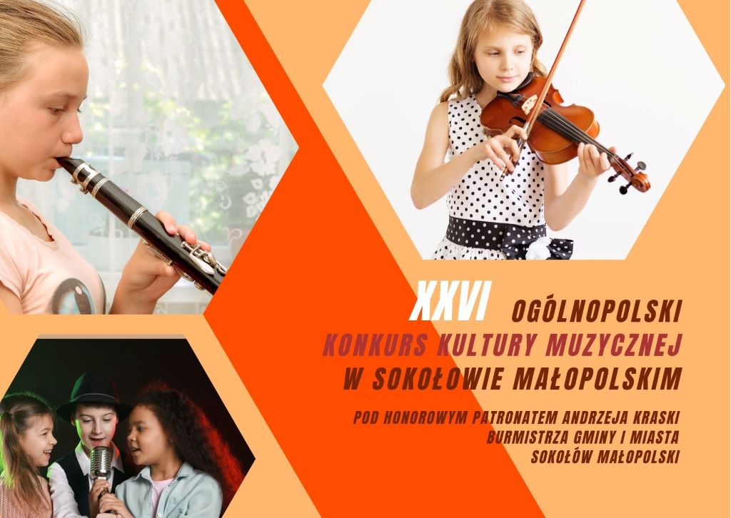 Serdecznie zapraszamy uczniów publicznych i niepublicznych szkół muzycznych pierwszego stopnia, uczniów szkół podstawowych, szkół ponadpodstawowych, ognisk artystycznych a także uczestników zajęć pozaszkolnych prowadzonych przez instytucje kulturalne i placówki kształcenia pozaszkolnego do udziału w XXVI Ogólnopolskim Konkursie Kultury Muzycznej w Sokołowie Małopolskim Pod Patronatem Andrzeja Kraski – Burmistrza Gminy i Miasta Sokołów Małopolski.