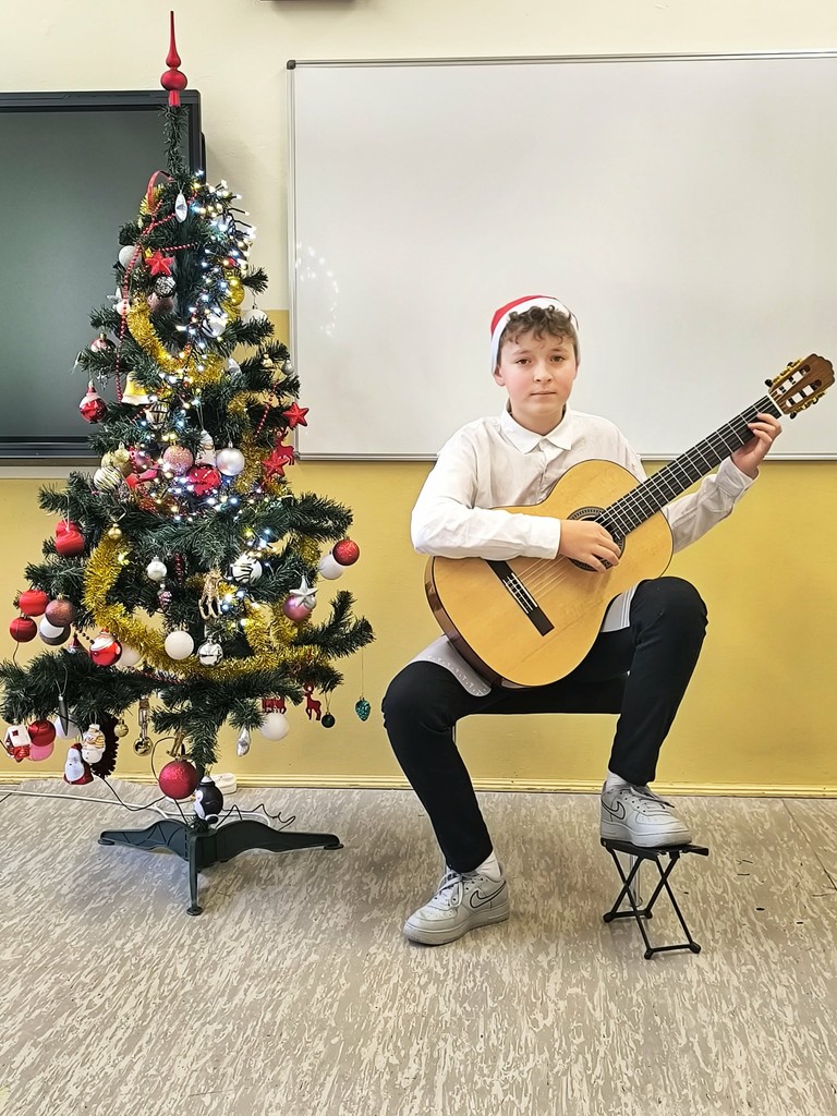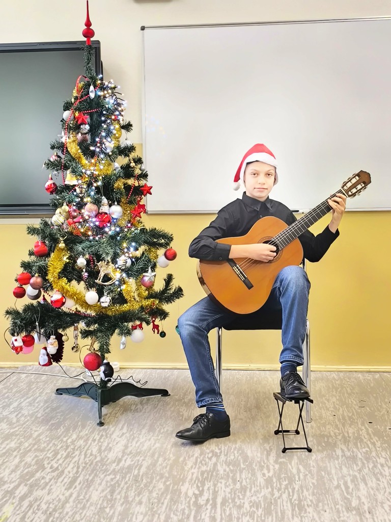 W sobotę 20 grudnia 2025 roku odbył się szkolny Koncert Kolęd w wykonaniu uczniów klasy gitary Niepaństwowej Szkoły Muzycznej I stopnia w Sokołowie Małopolskim. Uczniów do występu przygotował ich nauczyciel – p. Krzysztof Przybyło.