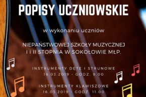 Już wkrótce uczniowie Niepaństwowej Szkoły Muzycznej I i II stopnia w Sokołowie Małopolskim zaprezentują swoje umiejętności na Popisach Uczniowskich, które odbędą się 16 marca 2019 roku. Odbędą się dwa koncerty: pierwszy z nich obejmie prezentacje uczniów grających na instrumentach dętych >> Czytaj dalej…